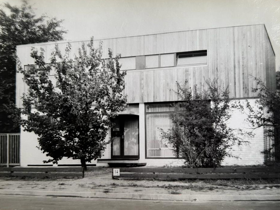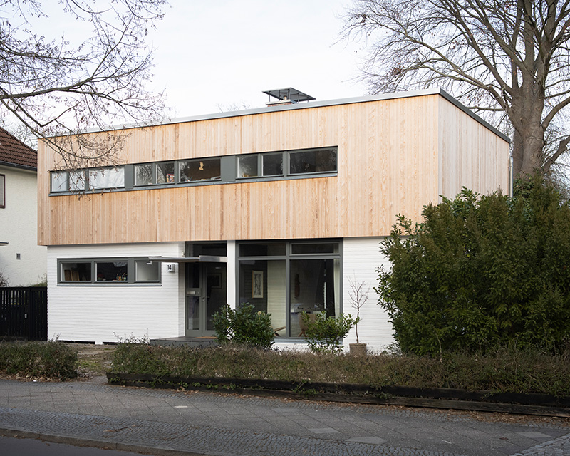 Das Gebäude wurde 1962 vom Architekten Klaus Hoffmann als dessen Wohnhaus geplant und gebaut. Vorbild war unter anderem das Wohnhaus Alvar Aaltos in Helsinki. Das Haus Hoffmann ist nahezu unverändert erhalten und steht unter Denkmalschutz. Auch die Gartengestaltung mit historischen Spolien zählt zum Denkmal. Die Herausforderung bestand vor allem darin, das Gebäude gemäß der denkmalpflegerischen Auflagen kombiniert mit den Anforderungen an ein Effizienzhaus zu sanieren. Im Laufe der Jahre hatte das Gebäude unterschiedlichste Farbfassungen. Im Rahmen der Sanierung wurde die ursprüngliche Farbfassung wieder hergestellt. Die stark verwitterte Nut- und Federschalung mit verschiedenen Farbfassungen wurde durch eine unbehandelte, astfreie Fassade gemäß Bestand ausgetauscht. Diese wird im Laufe der Zeit vergrauen. Das äußere Erscheinungsbild (Sichtmauerwerk) durfte nicht verändert werden, was dazu führte, dass teilweise eine Innenwanddämmung zum Einsatz kam und die ungedämmte Bodenplatte des nicht unterkellerten Gebäudeteils gegen eine gedämmte Stahlbetonplatte mit Fußbodenheizung ausgetauscht wurde.